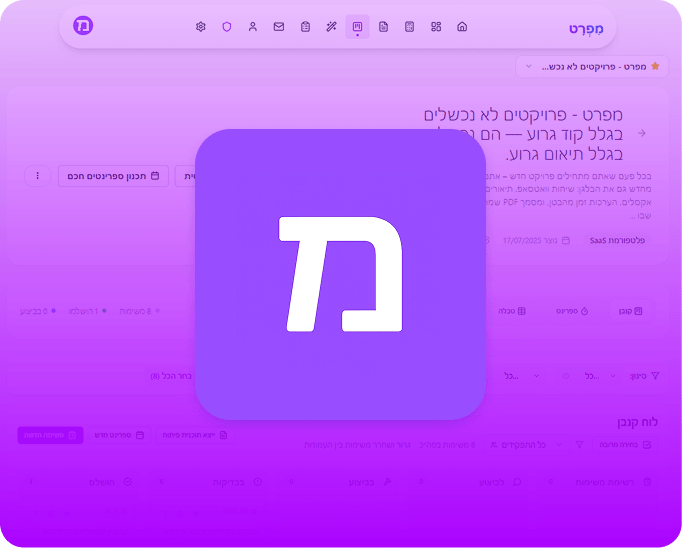פלטפורמה מבוססת AI לניהול אפיונים ופרויקטים. יוצרת אוטומטית תיק מוצר, מפרקת לטיקטים, בונה הצעות מחיר ומנהלת חוזים מול לקוחות – הכל במקום אחד.