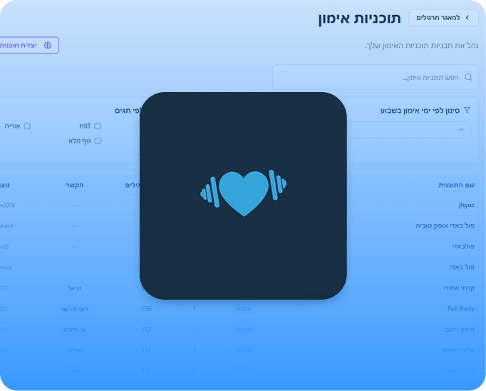 מערכת חכמה למאמני כושר לניהול מתאמנים, תוכניות אימון ותזונה – עם שכבת AI מתקדמת, ואפליקציית מתאמנים מלאה לדיווח ובקרה בזמן אמת.